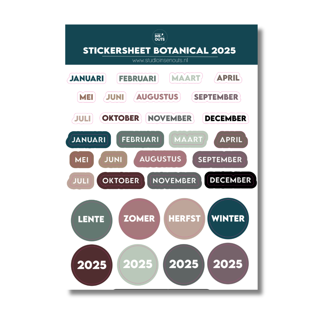 Stickervel Maanden 2025 - Botanical Kleuren