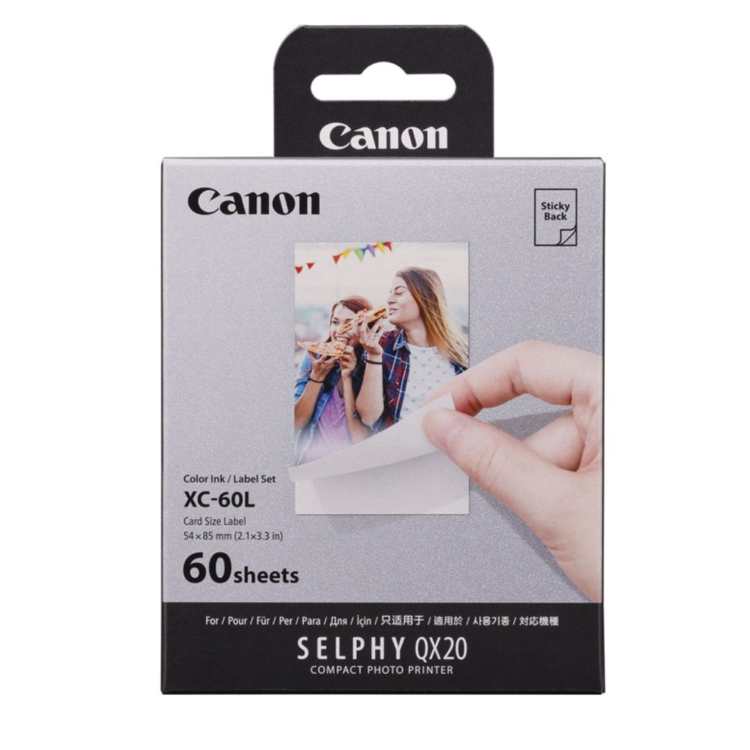 De XC‑60L set is compatibel met de Canon SELPHY QX20 en levert compacte, hoogwaardige prints direct vanaf je smartphone, camera of computer. Elke afdruk is kleurvast, waterbestendig en bestand tegen vlekken, ideaal voor journaling, scrapbooks of kleine fotocollages.