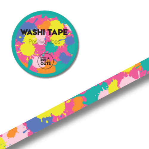 De set bevat twee washi tapes in smalle formaten van 0,5 en 1 cm breed. De ene tape is geel met roze en oranje confettivormpjes, de andere tape is oranje met vrolijke stipjes in verschillende kleuren. Ze passen perfect bij de stickers, kaartjes en achtergronden en zijn ideaal om elementen op een speelse manier te omlijnen of vast te plakken.