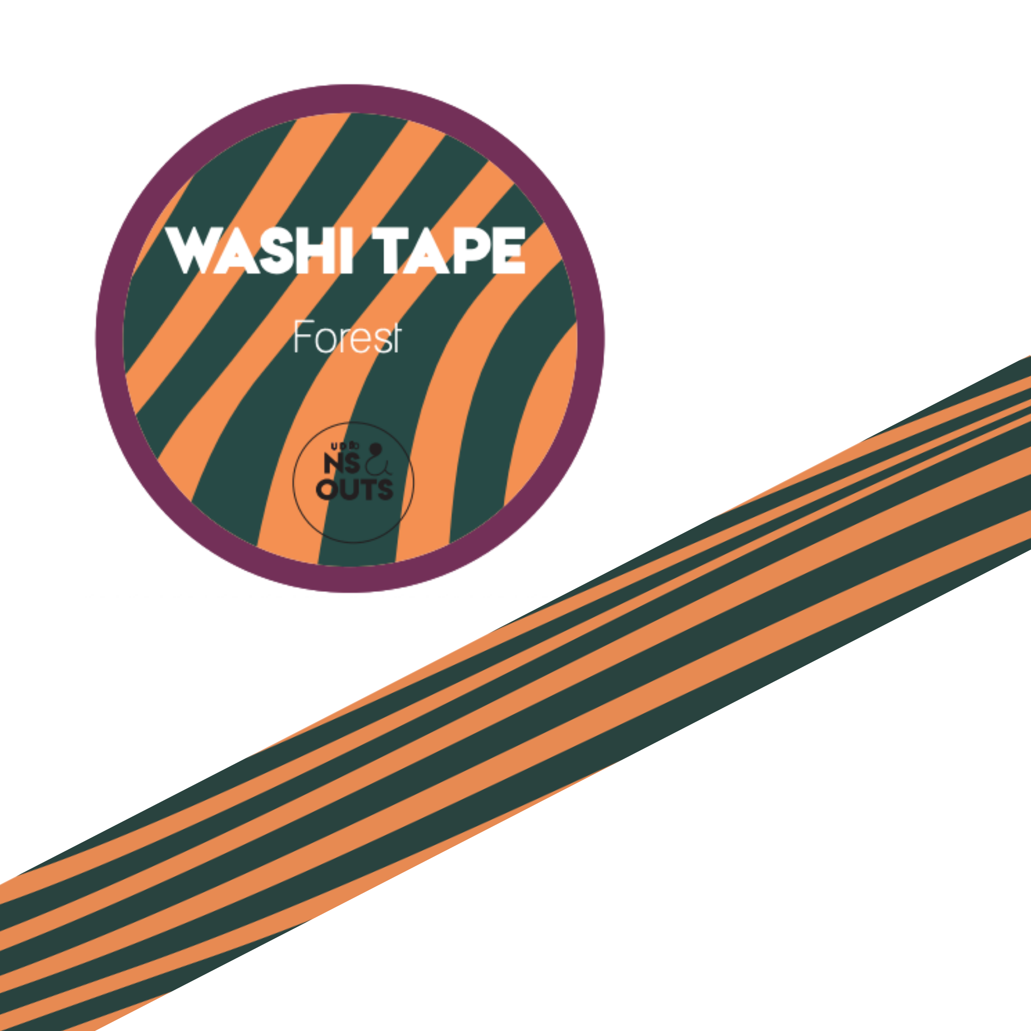 Breng een stoere en warme herfstsfeer in je creatieve projecten met deze brede washi tape Forest van Studio Ins & Outs. De tape heeft een opvallend gestreept patroon in diepe bosgroene en warme oranje tinten, geïnspireerd op de kleuren van de herfst. Perfect voor het decoreren van invulboeken, plakboeken, bullet journals, scrapbooking en fotoboeken.