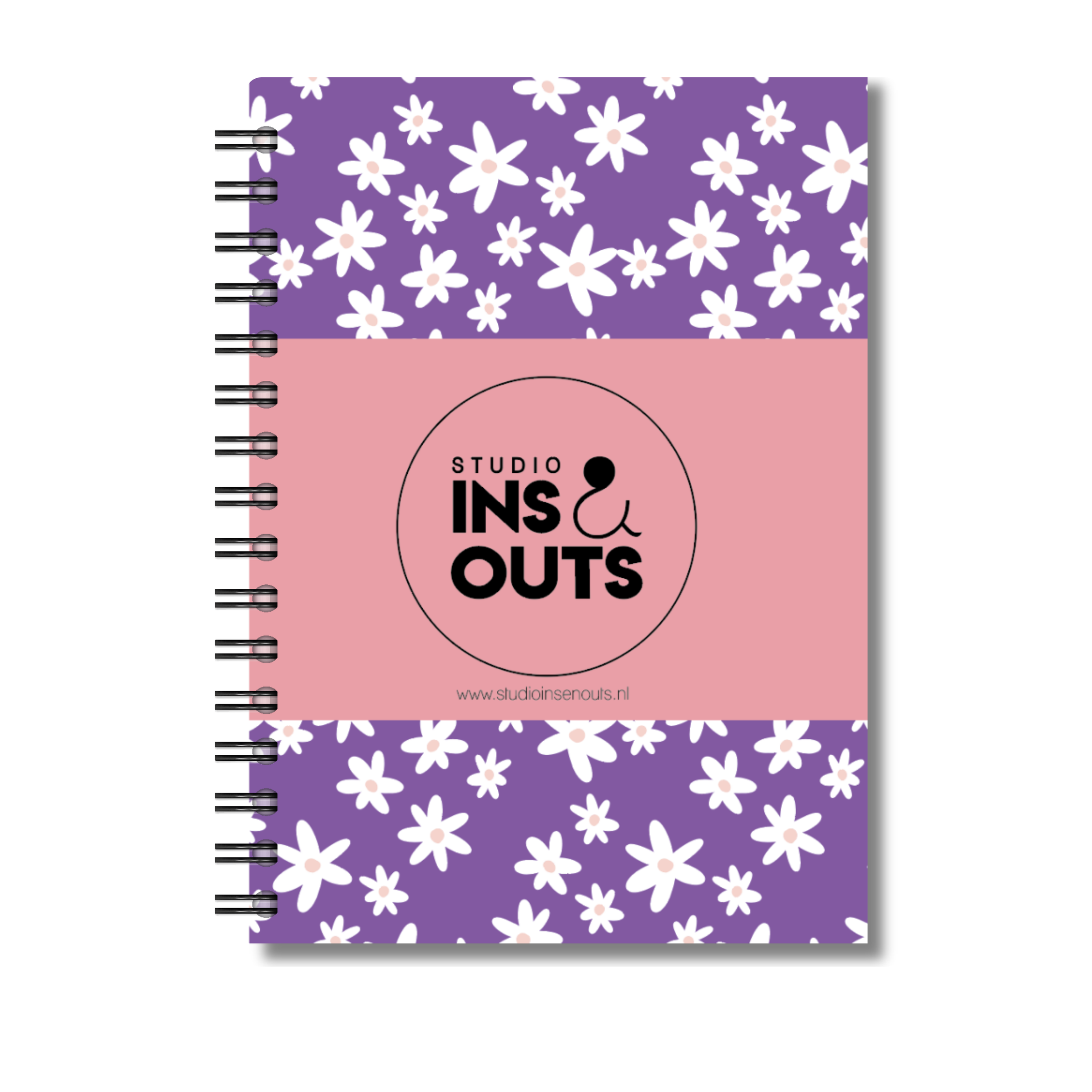 Bullet Journal A5 Op Maat | Bujo Eigen Tekst | Gepersonaliseerd Notitieboek Dots | A5 - 14,9x21cm | Paars Met Witte Bloemetjes