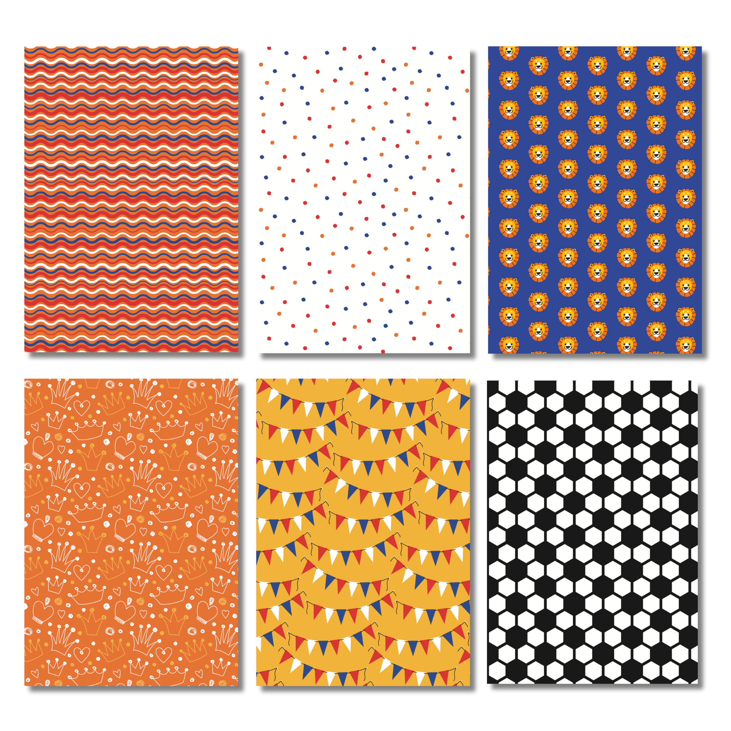 Paperpad: 24 dubbelzijdige A5-vellen met effen kleuren en prints zoals leeuwtjes, confetti en grafische voetbalpatronen. Geschikt als achtergrondpapier voor WK voetbal scrapbook pagina’s.
