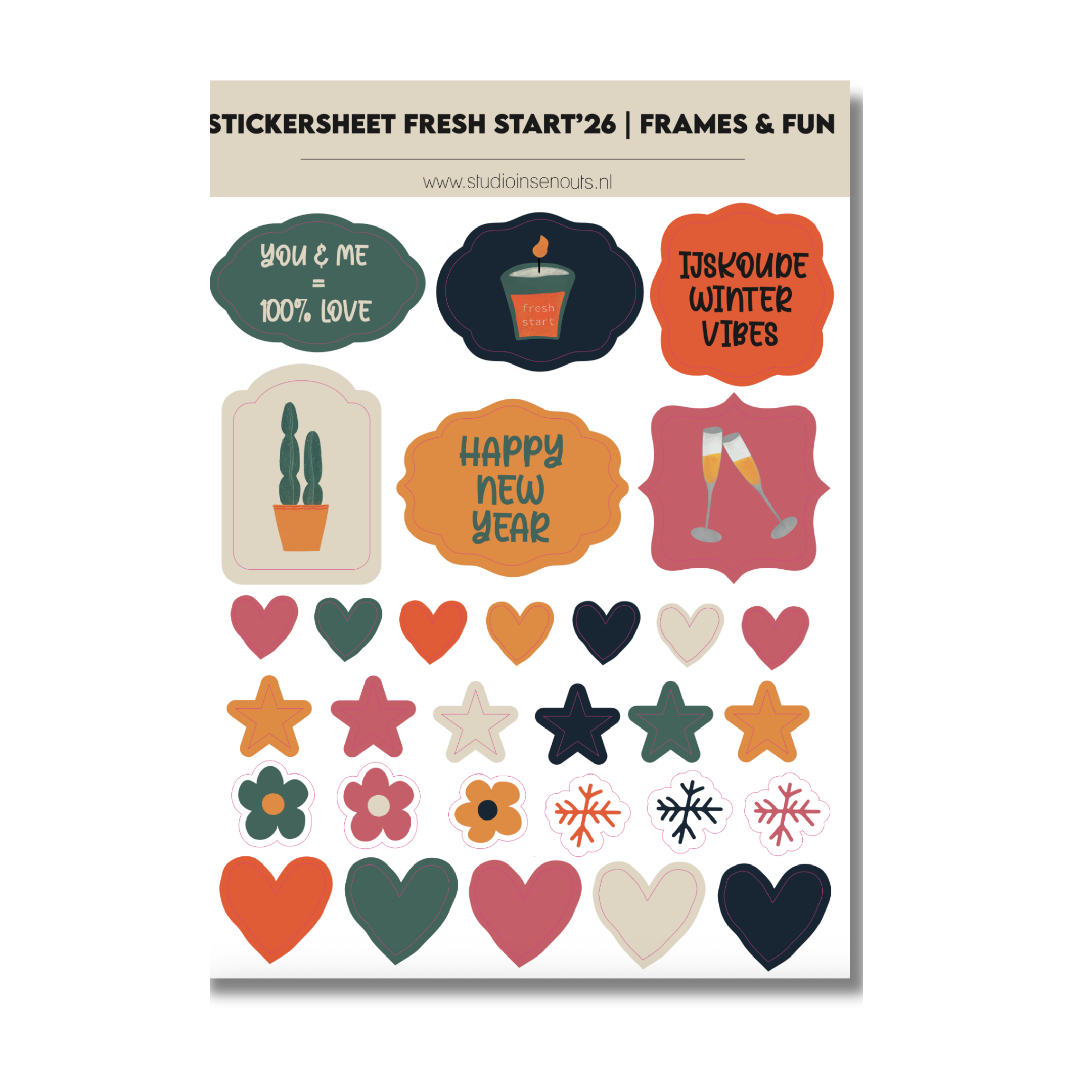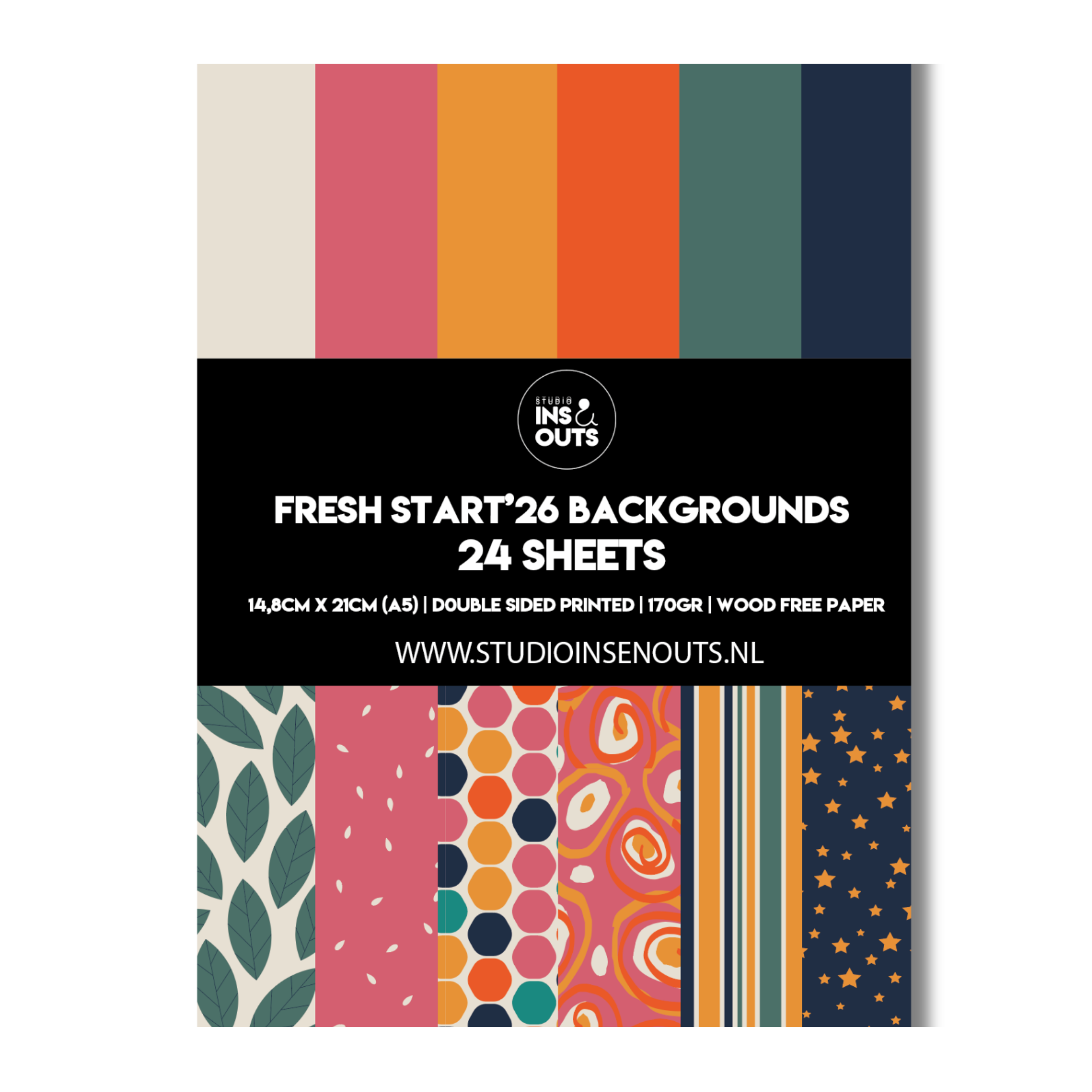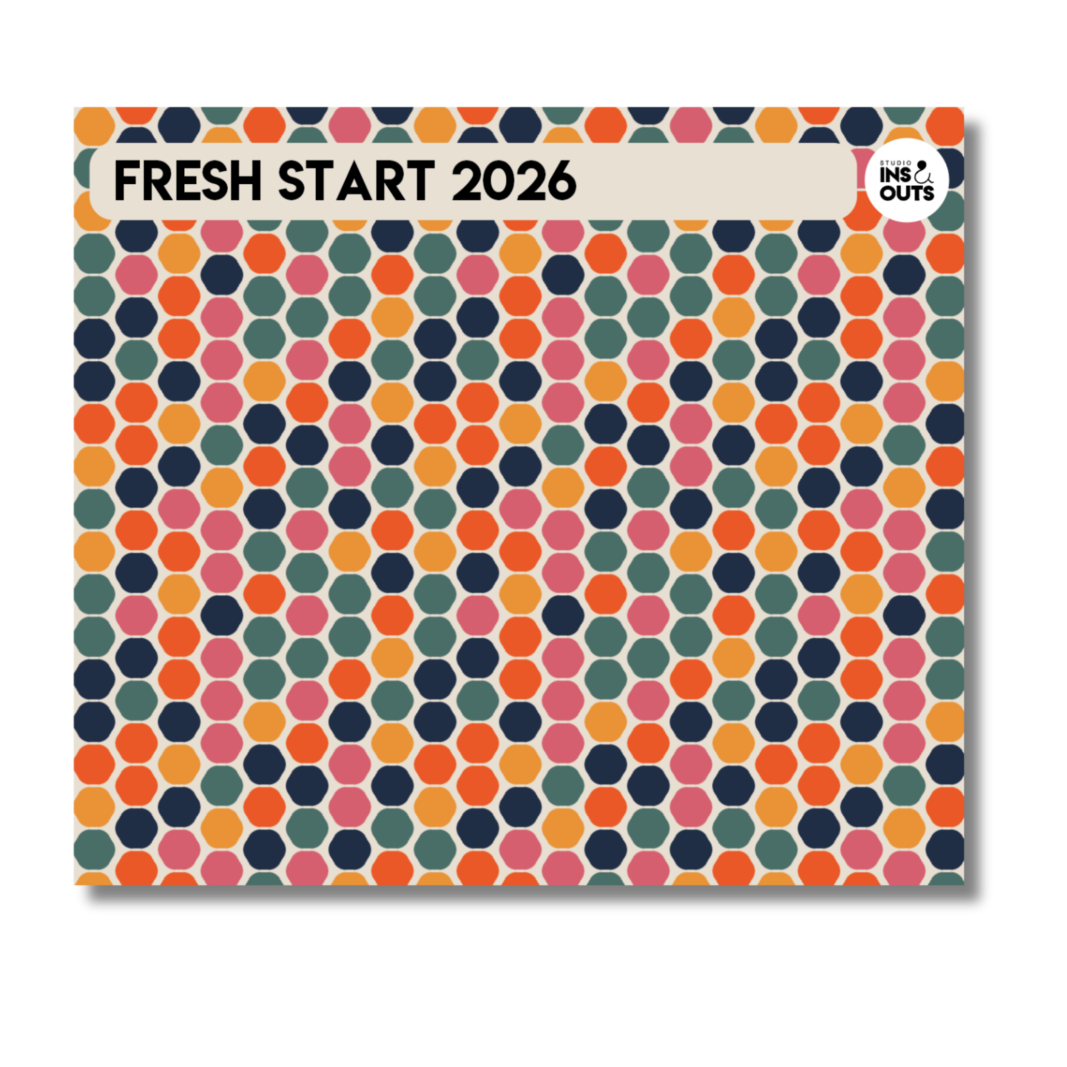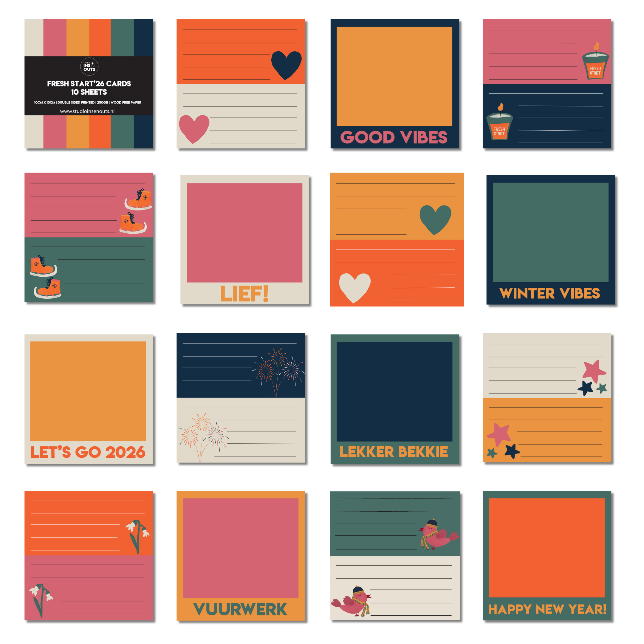De Fresh Start’26 collectie van Studio Ins & Outs is een compleet scrapbook pakket met alles wat je nodig hebt voor creatieve pagina’s rondom het nieuwe jaar, januari-thema’s en een frisse start in 2026. Deze set bevat een paperpad, stickers, washi tapes en kaartjes in de kenmerkende Fresh Start-kleuren: crème, roze, oranje, geel, groen en donkerblauw. Perfect voor scrapbooking, journaling, planners en fotoboeken.