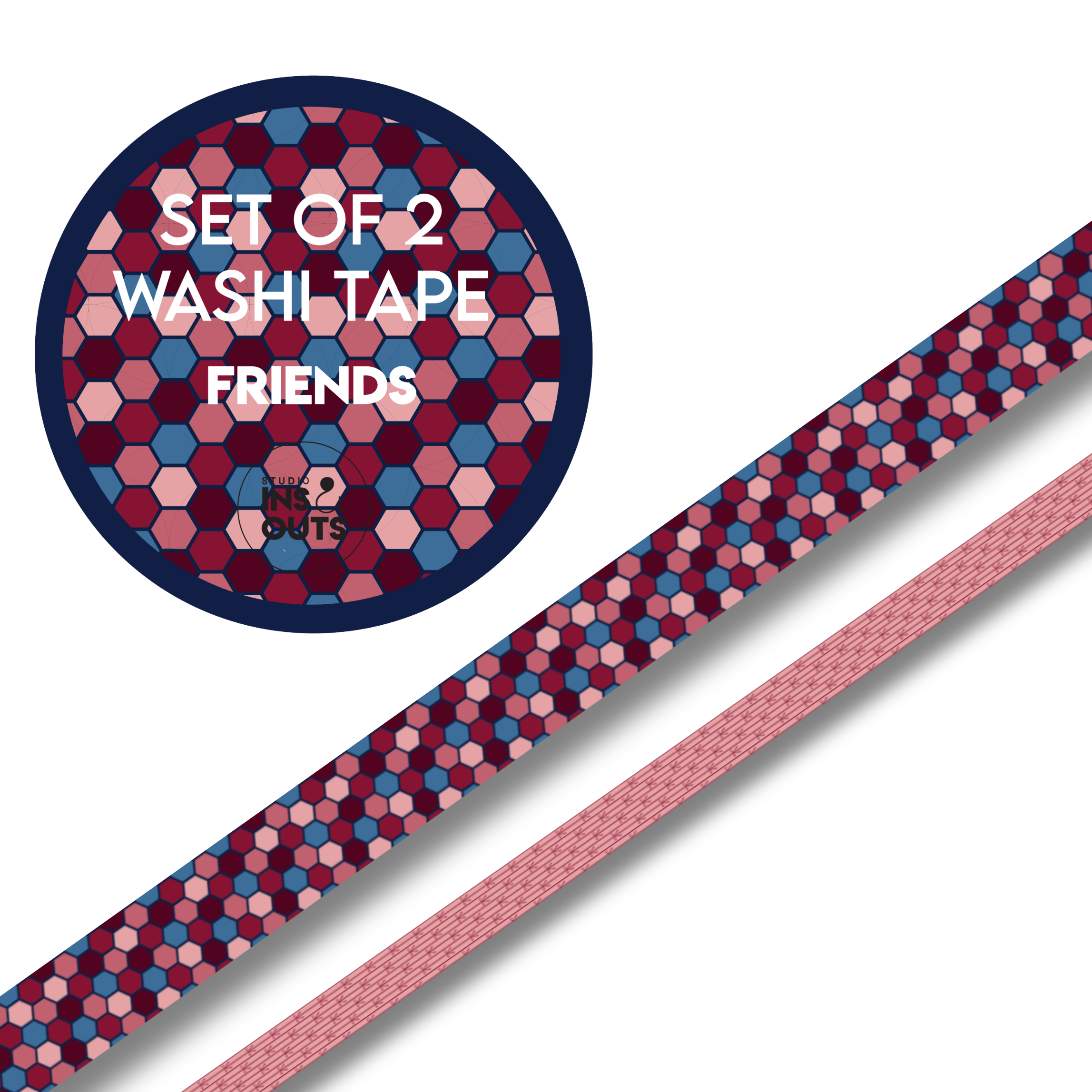 - Washi tapes set van 2: Twee bijpassende tapes met hexagon en strikjes patronen in Friends’26 stijl, geschikt voor randen, accenten en het vastzetten van foto’s.