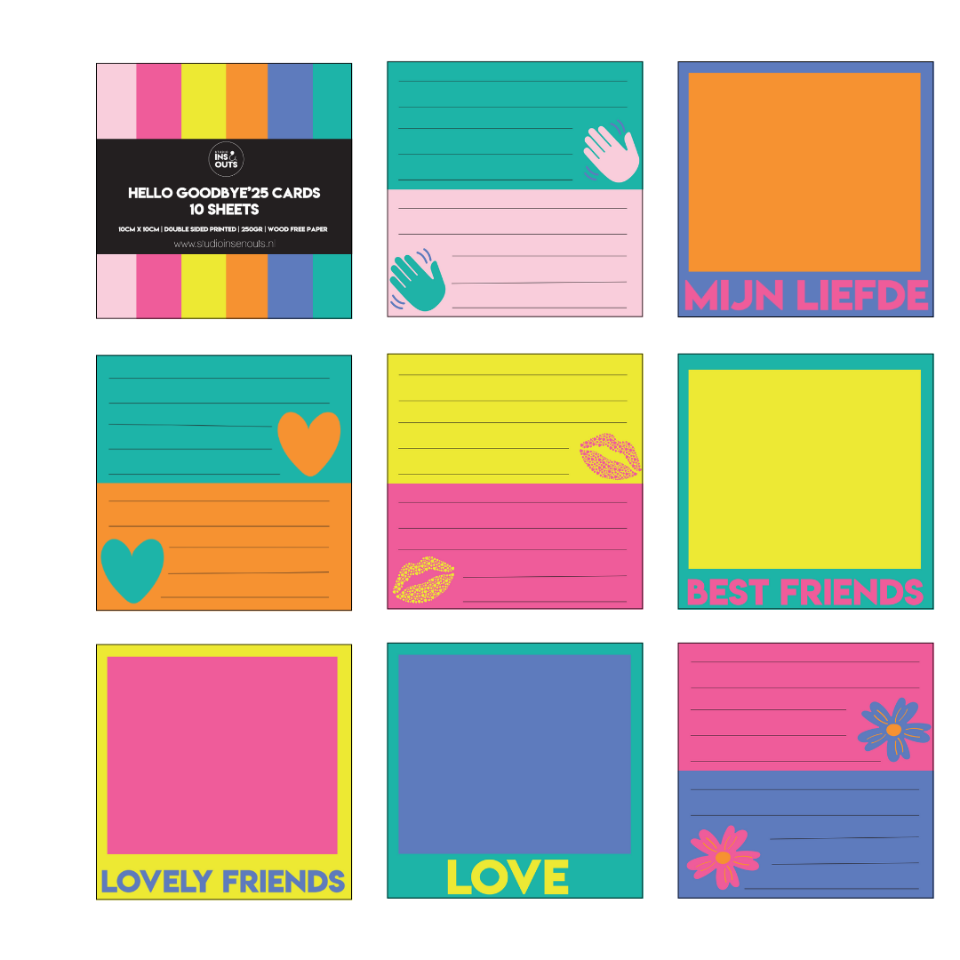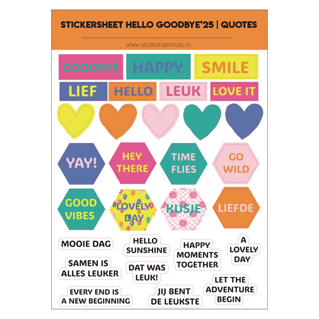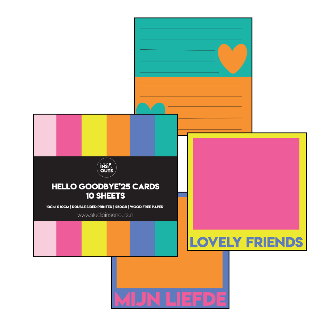 De collectie Hello Goodbye'25 draait om vrolijke overgangen, nieuwe hoofdstukken en betekenisvolle momenten zoals afscheid nemen, een nieuw avontuur beginnen of iemand aanmoedigen. Elk onderdeel uit deze set is ontworpen om een warme en positieve sfeer over te brengen. Daarnaast bevat de set ook mooie, lieve en leuke teksten die je altijd kunt gebruiken in je invulboek, plakboek of scrapbook.