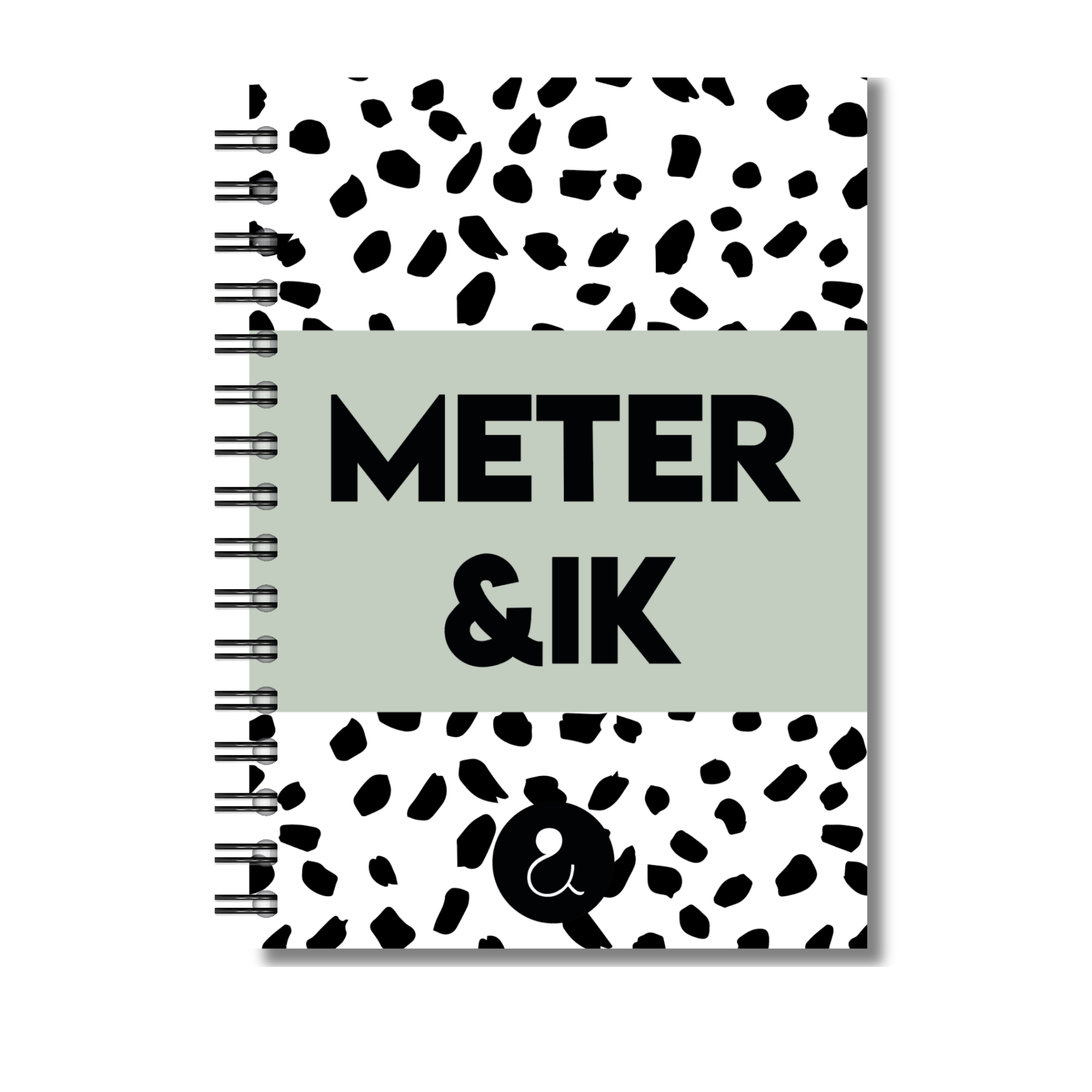 - Omslag: Dots stippen patroon met groene band en de tekst Meter & Ik