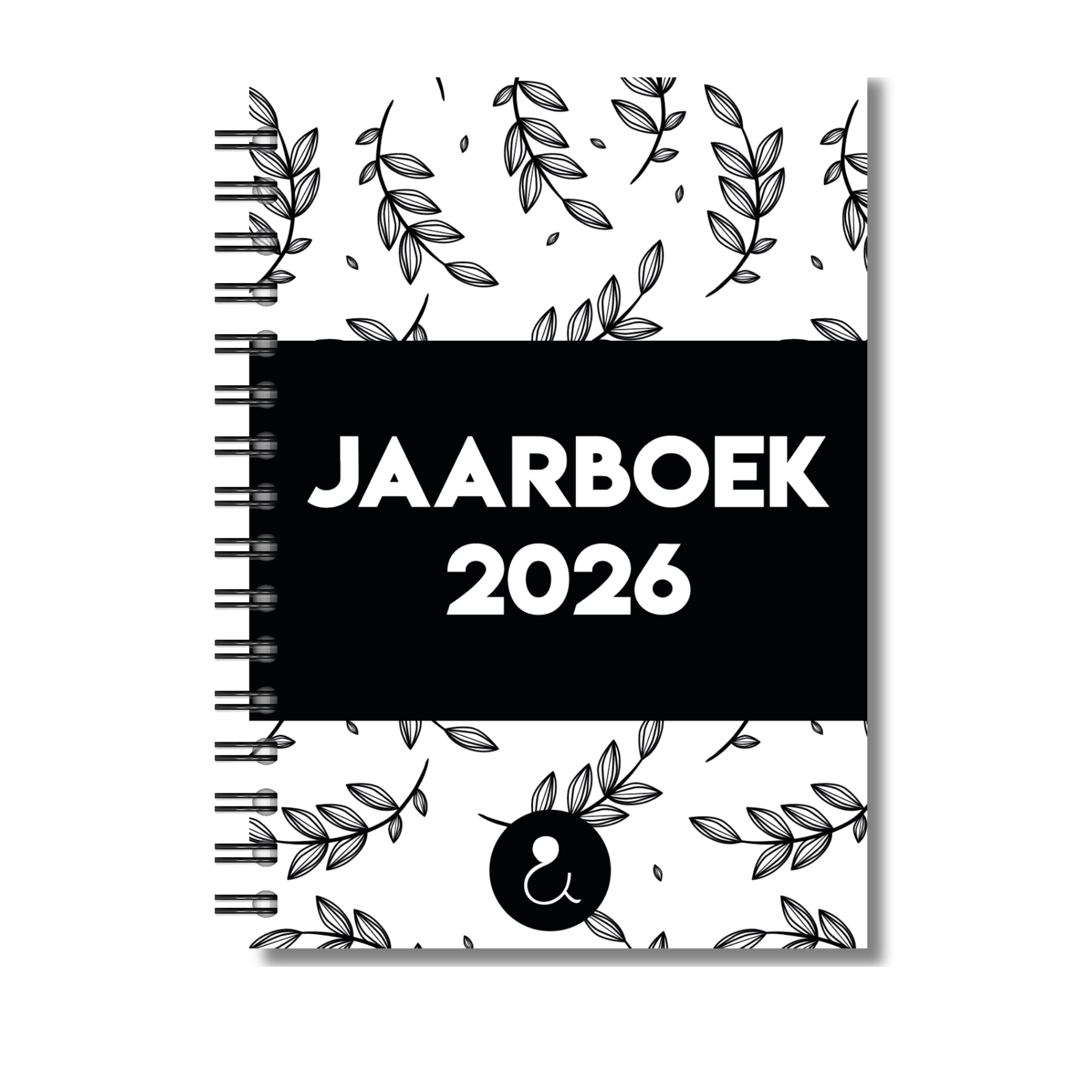 Jaarboek 2026 A5 | Blanco Jaarboek A5 2026 | Fotoboekje Jaarboek | 14,8x21cm | Botanical Zwart