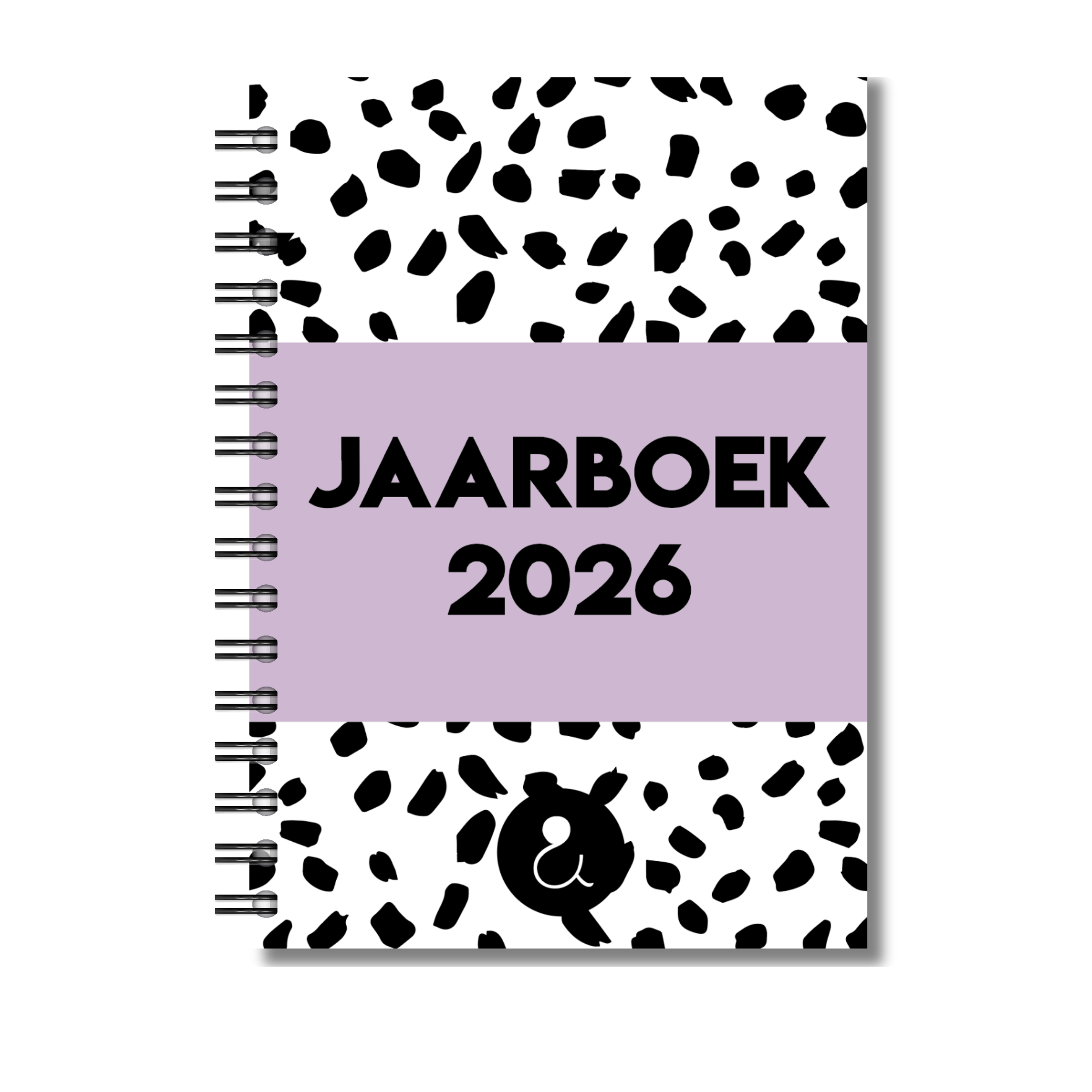 Jaarboek 2026 A5 | Blanco Jaarboek A5 2026 | Fotoboekje Jaarboek | 14,8x21cm | Dots Lila