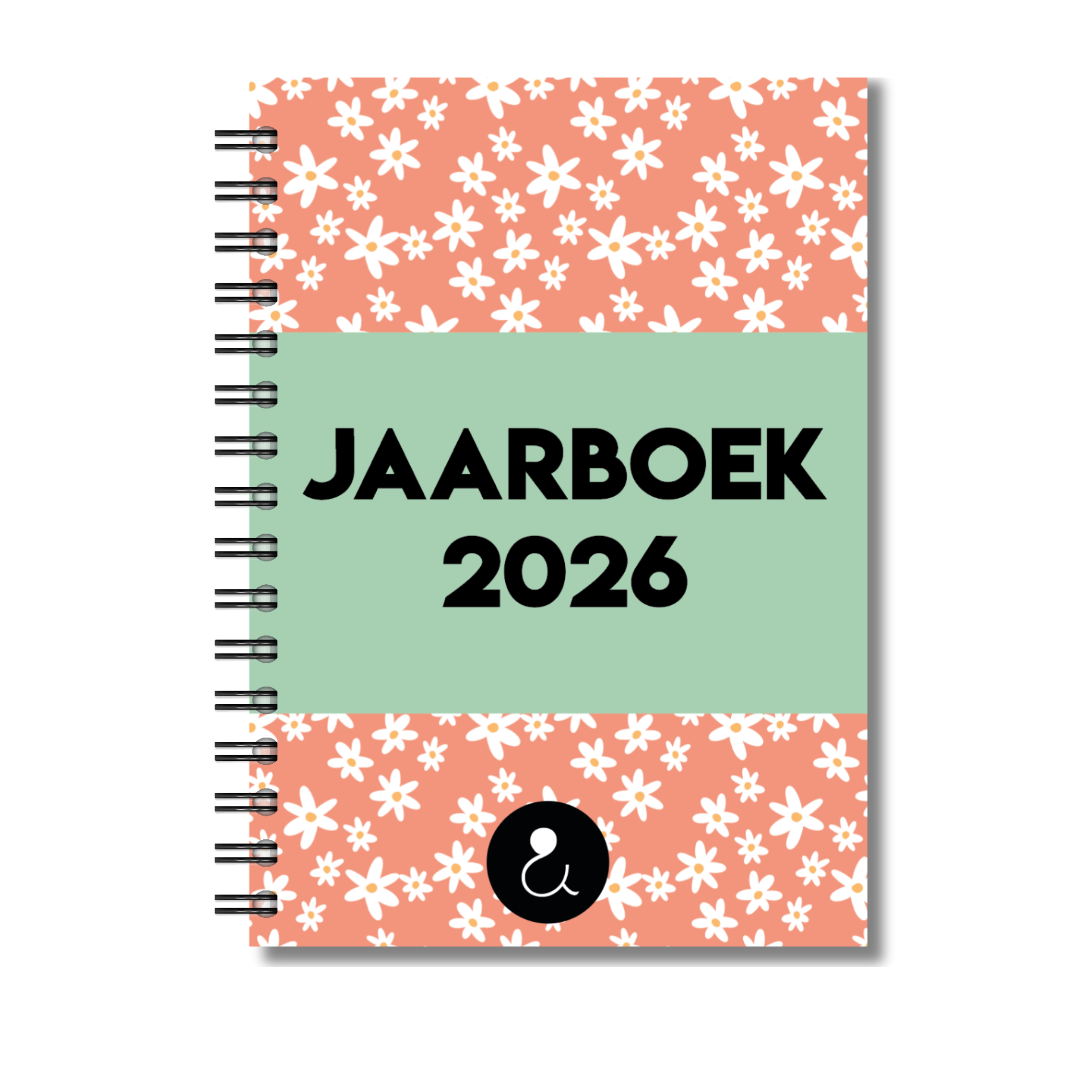 Jaarboek 2026 A5 | Blanco Jaarboek A5 2026 | Fotoboekje Jaarboek | 14,8x21cm | Oranje Met Witte Bloemetjes