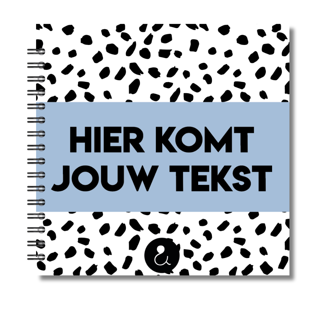 Dit gepersonaliseerde fotoboek met zwart-wit dots patroon en een subtiele blauwe band is perfect voor liefhebbers van een frisse, minimalistische stijl. Het moderne ontwerp past bij elke gelegenheid – van reisfoto’s tot bruiloftsherinneringen of creatieve scrapbook pagina’s. Laat je eigen naam of tekst op de kaft drukken en maak er een uniek persoonlijk boek van. De stevige kaft, ringband en hoogwaardige afwerking zorgen ervoor dat dit gepersonaliseerde plakboek lang mooi blijft.