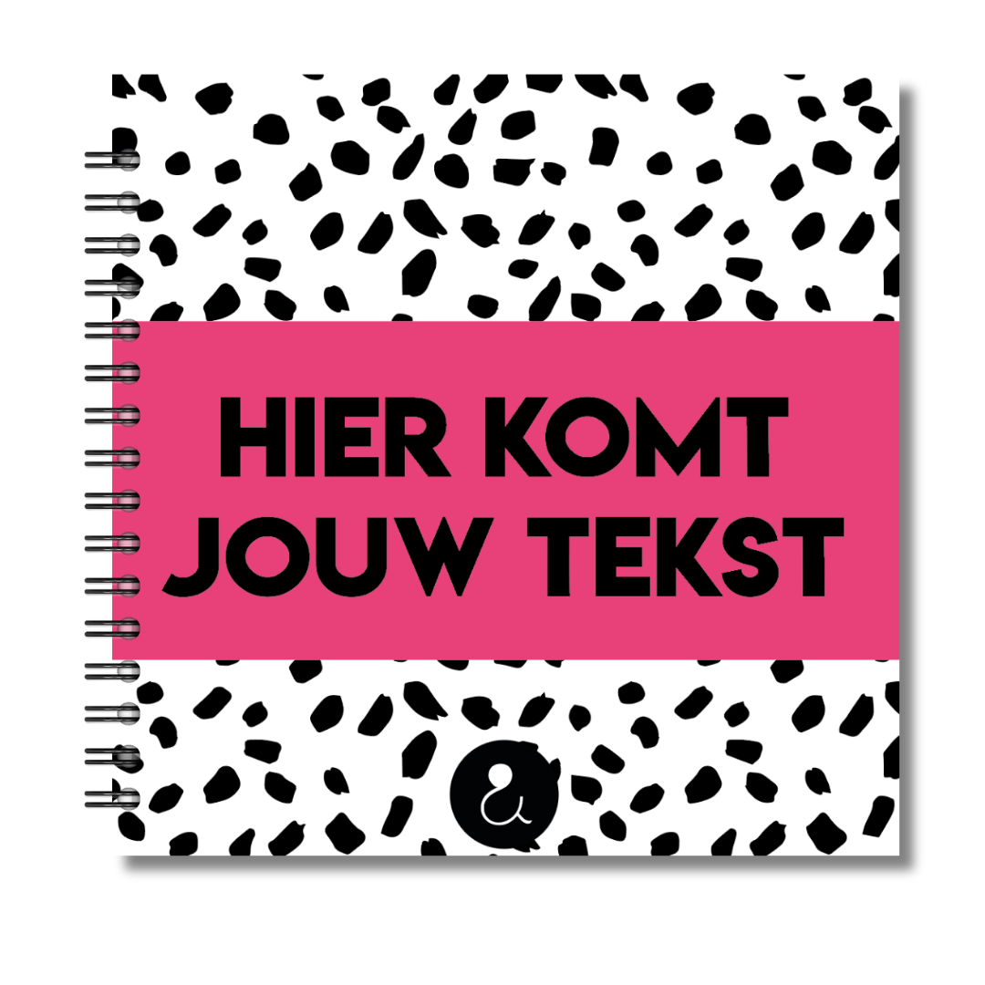Dit gepersonaliseerde fotoboek met zwart-wit dots patroon en een subtiele roze band is perfect voor liefhebbers van een frisse, minimalistische stijl. Het moderne ontwerp past bij elke gelegenheid – van reisfoto’s tot bruiloftsherinneringen of creatieve scrapbook pagina’s. Laat je eigen naam of tekst op de kaft drukken en maak er een uniek persoonlijk boek van. De stevige kaft, ringband en hoogwaardige afwerking zorgen ervoor dat dit gepersonaliseerde plakboek lang mooi blijft.