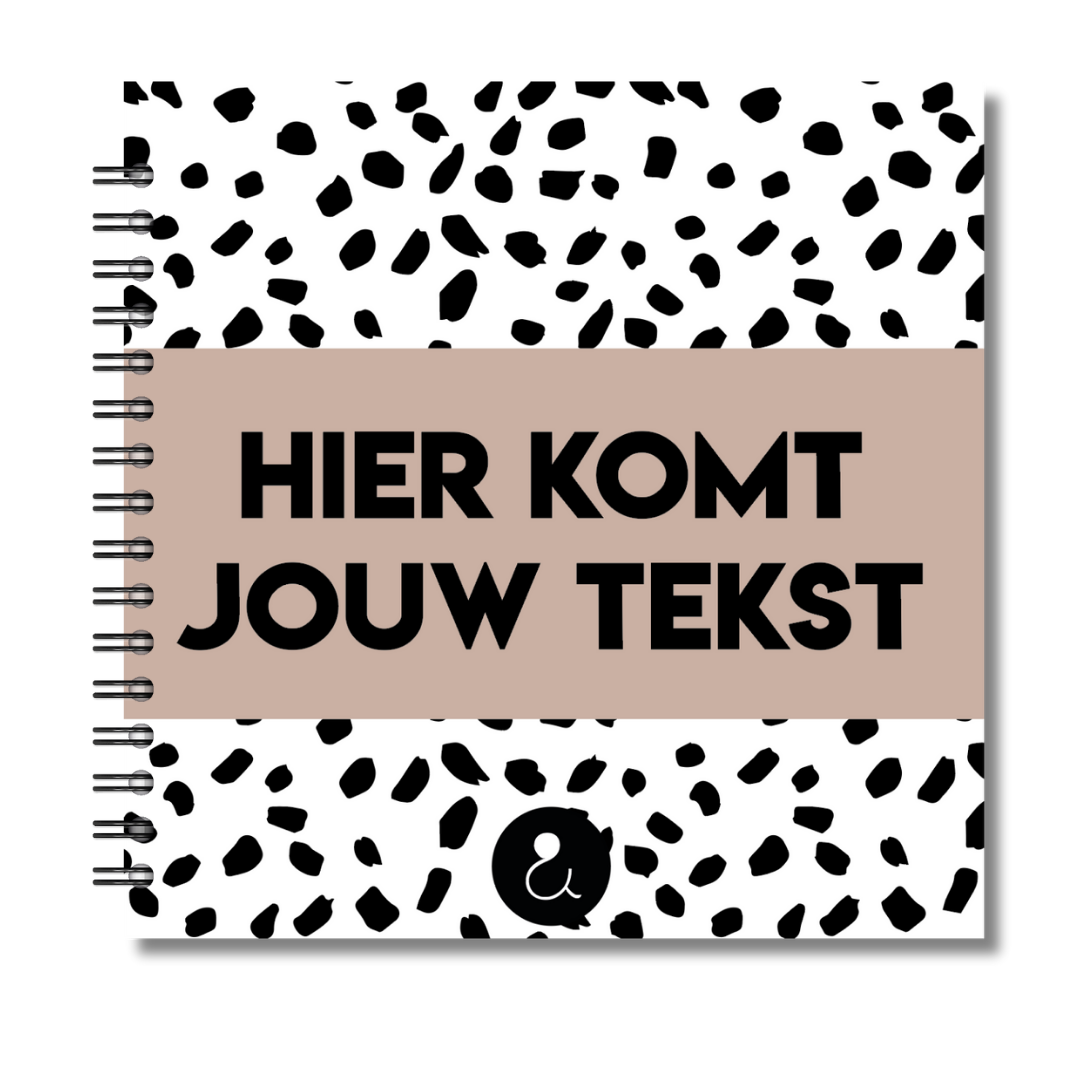 Dit gepersonaliseerde fotoboek met zwart-wit dots patroon en een subtiele sandkleurige band is perfect voor liefhebbers van een frisse, minimalistische stijl. Het moderne ontwerp past bij elke gelegenheid – van reisfoto’s tot bruiloftsherinneringen of creatieve scrapbook pagina’s. Laat je eigen naam of tekst op de kaft drukken en maak er een uniek persoonlijk boek van. De stevige kaft, ringband en hoogwaardige afwerking zorgen ervoor dat dit gepersonaliseerde plakboek lang mooi blijft.