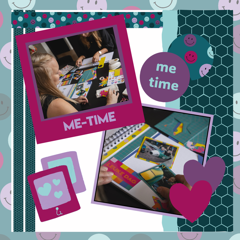 De collectie Me-Time’25 van Studio Ins & Outs is speciaal ontwikkeld voor iedereen die creativiteit wil combineren met ontspanning en selfcare. Met de harmonieuze mix van paars, lila, bordeaux, donkergroen, mintgroen en petrolgroen leg je herinneringen vast in een rustige en sfeervolle stijl. De prints en teksten zijn ontworpen om het thema me-time te benadrukken: tijd voor jezelf, relaxmomenten en kleine gelukjes. Deze complete set is daardoor ideaal als scrapbook pakket, journaling set of creatieve knutselset voor wie creativiteit wil gebruiken als manier om te ontspannen.