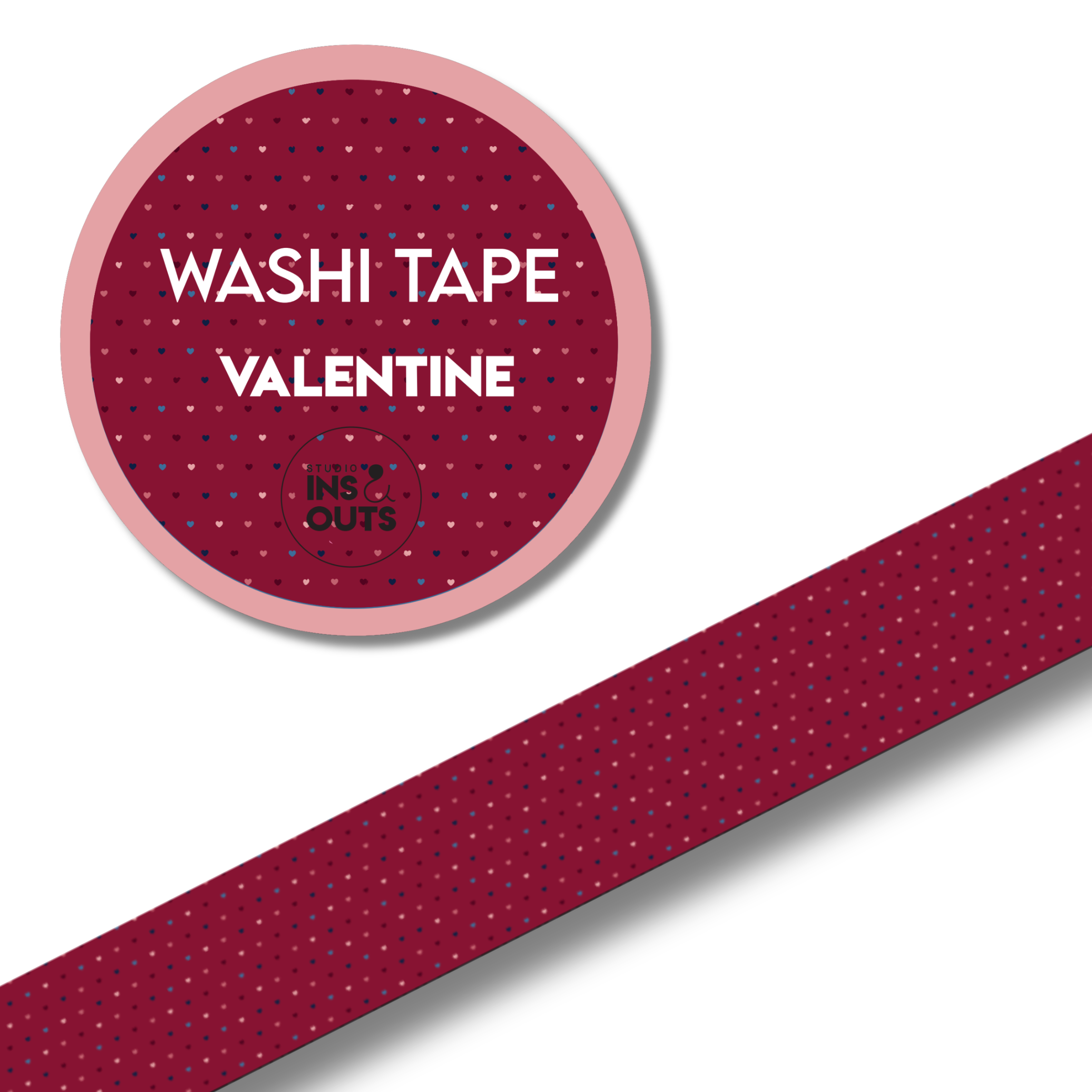 - Brede washi tape (1,5 cm): met een hartjesprint in Valentijnskleuren, geschikt voor randen, accenten en het vastzetten van foto’s of kaartjes.