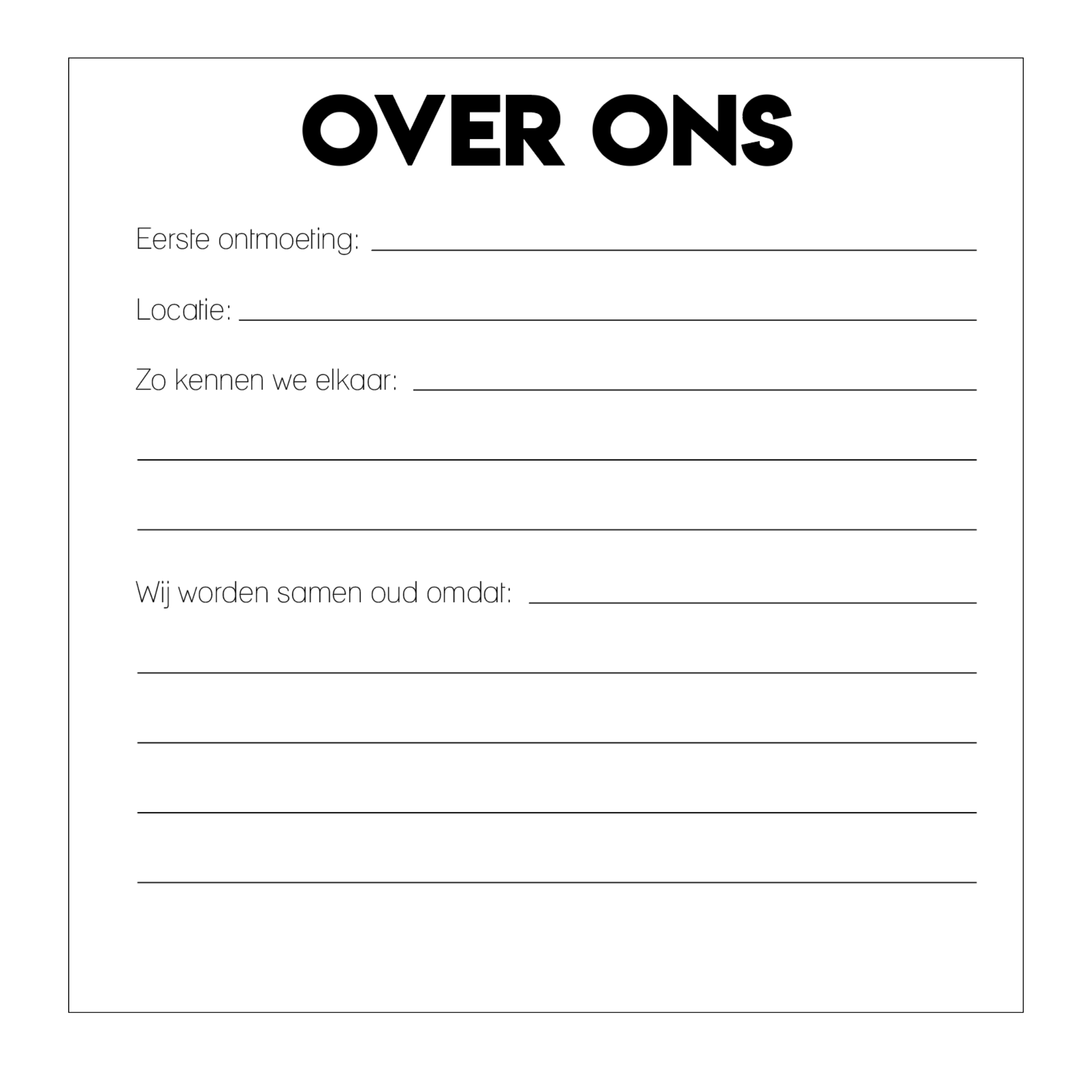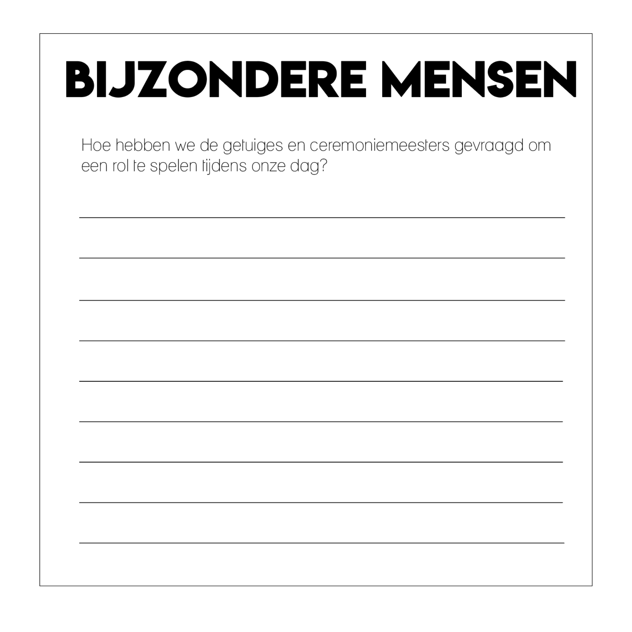 Deze weddingplanner is een uitgebreid trouwplanning boek voor stellen die hun bruiloft zelf willen plannen. In dit wedding planner boek Nederland voor bruid en bruidegom verzamel je alle ideeën, plannen en keuzes op één plek. Geen vaste regels of tijdlijn, maar een overzichtelijke bruiloft planner waarin je alles rondom de trouwdag kunt noteren. Van eerste inspiratie tot de laatste checklist, dit trouwplanner boek groeit met jullie mee tijdens het plannen.