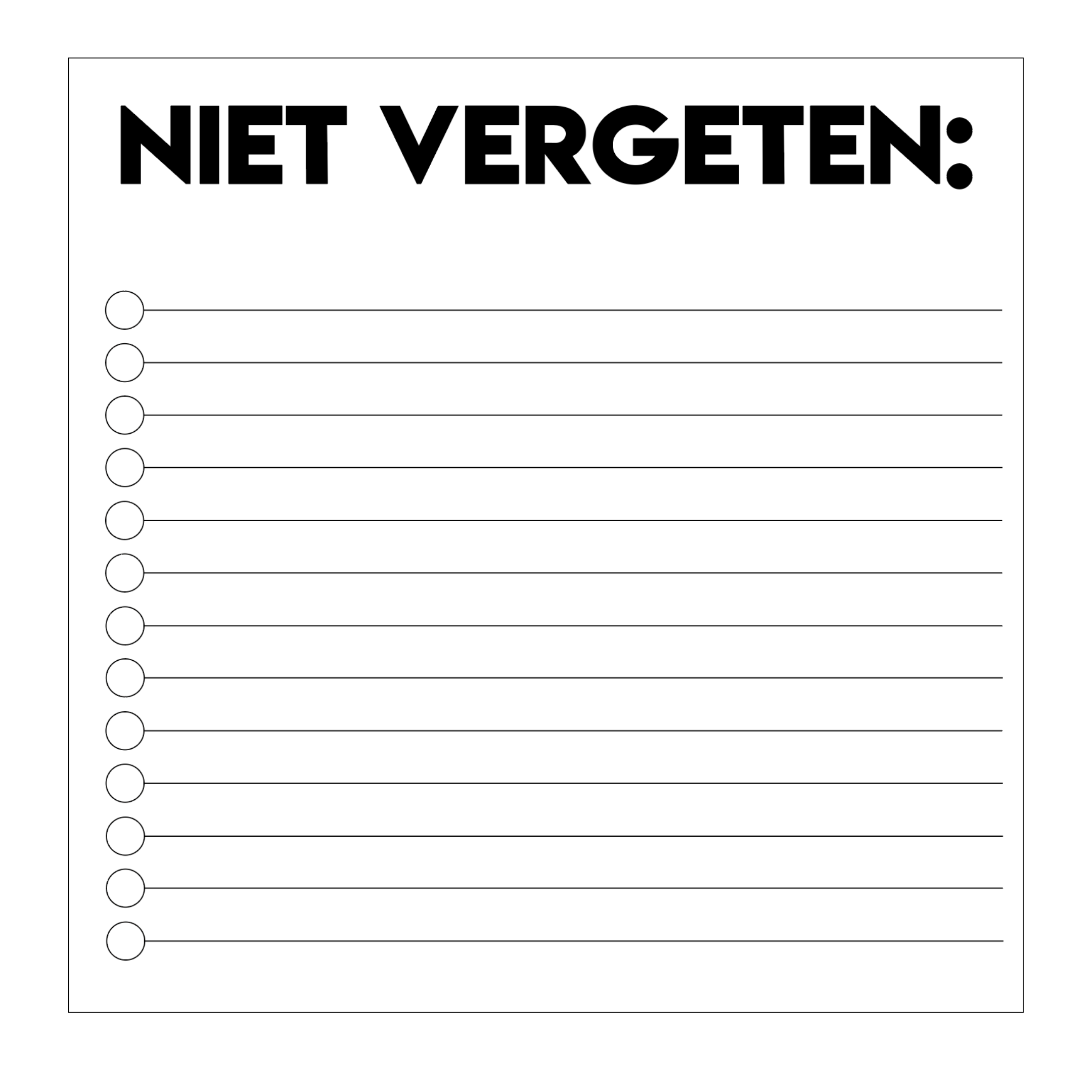 - Geen vaste volgorde: jullie vullen het in op je eigen manier