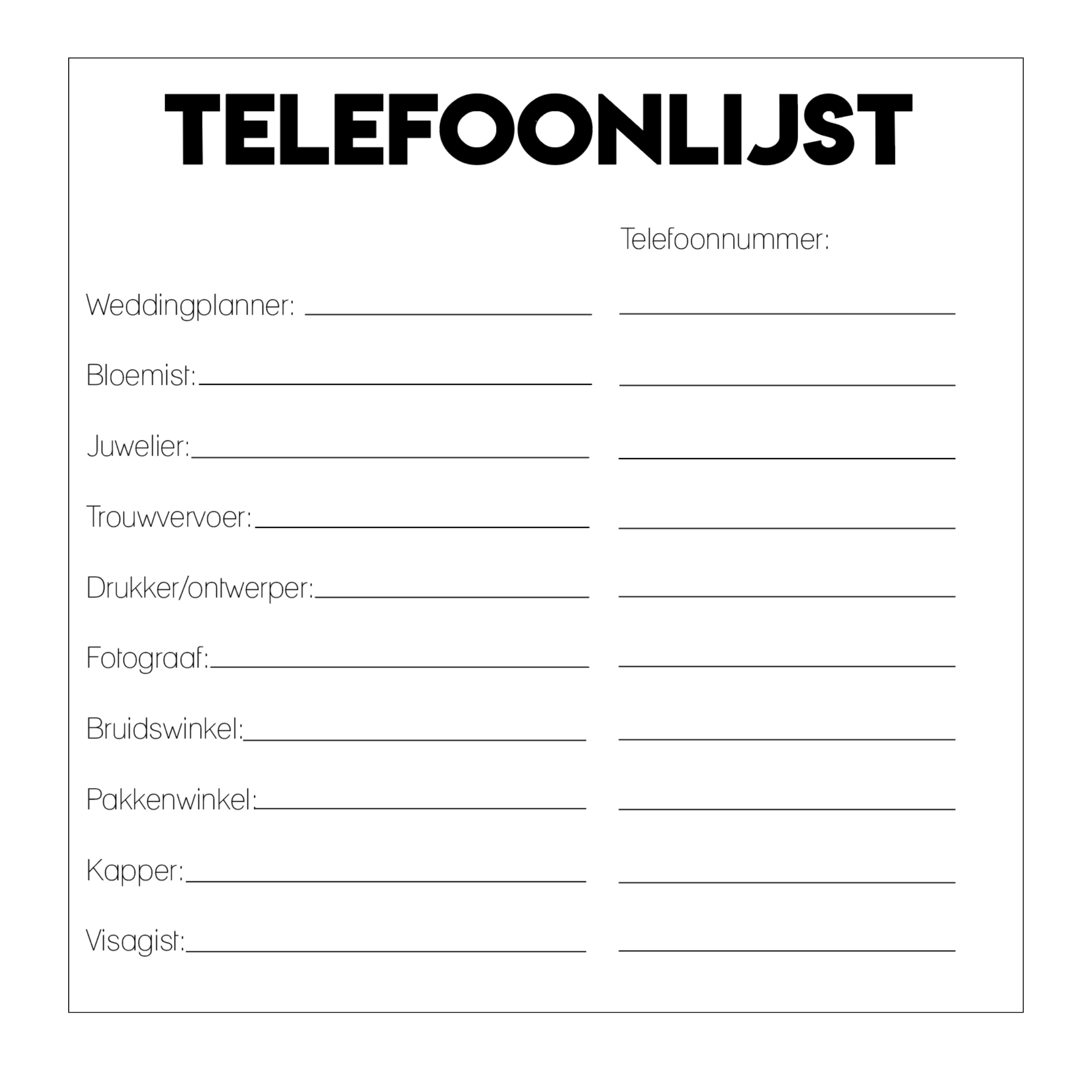 Bruiloft planner met leveranciers draaiboek en to do lijsten